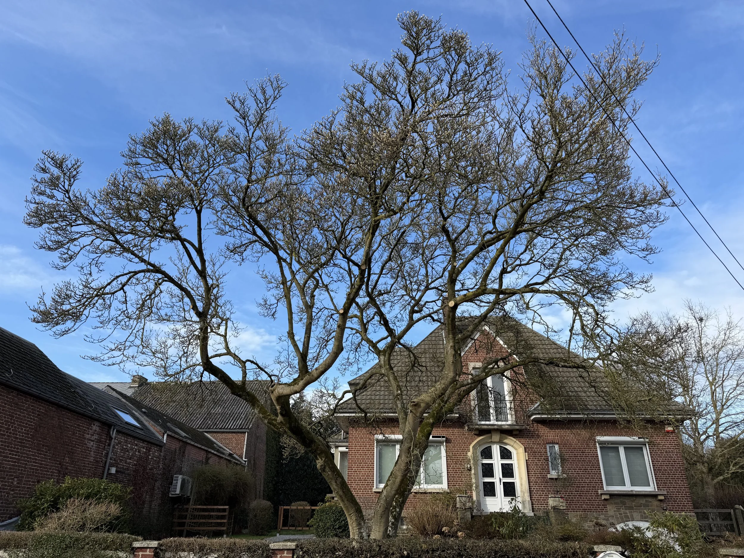 La proximité de lignes électriques ainsi qu’une rue particulièrement convoitée à proximité de cet arbre nécessitaient un élagage de celui-ci tout en conservant ce magnifique port qui lui est propre.
